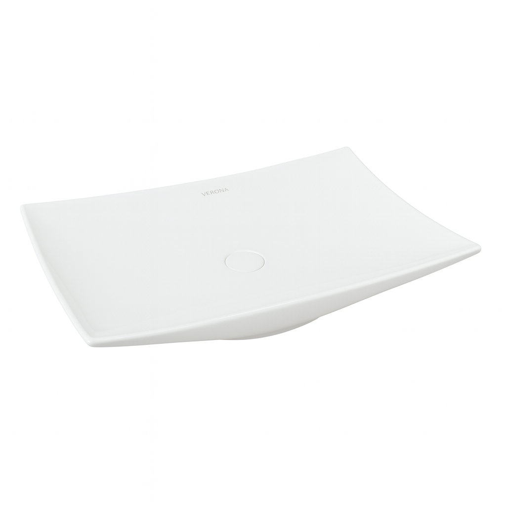 Bacha de sobreponer tipo pañuelo de 66x44x12 cm.Material loza vitrificada color blanco. Marca Verona, diseño italiano.