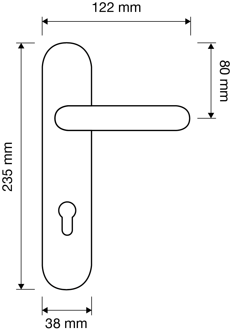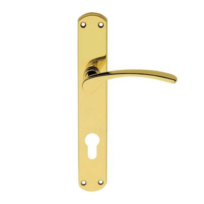 Manija Mare con placa un solo lado en bronce pulido. Marca Linea Cali, industria italiana. Se emplea para puertas principales y requiere de cerradura a eleccion para funcionar, pudiendo ser una una estandar de caja grande o una de seguridad.