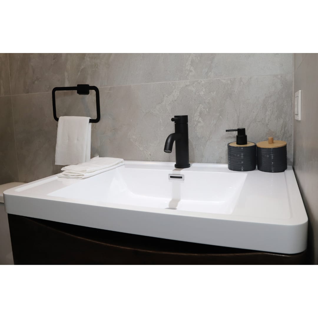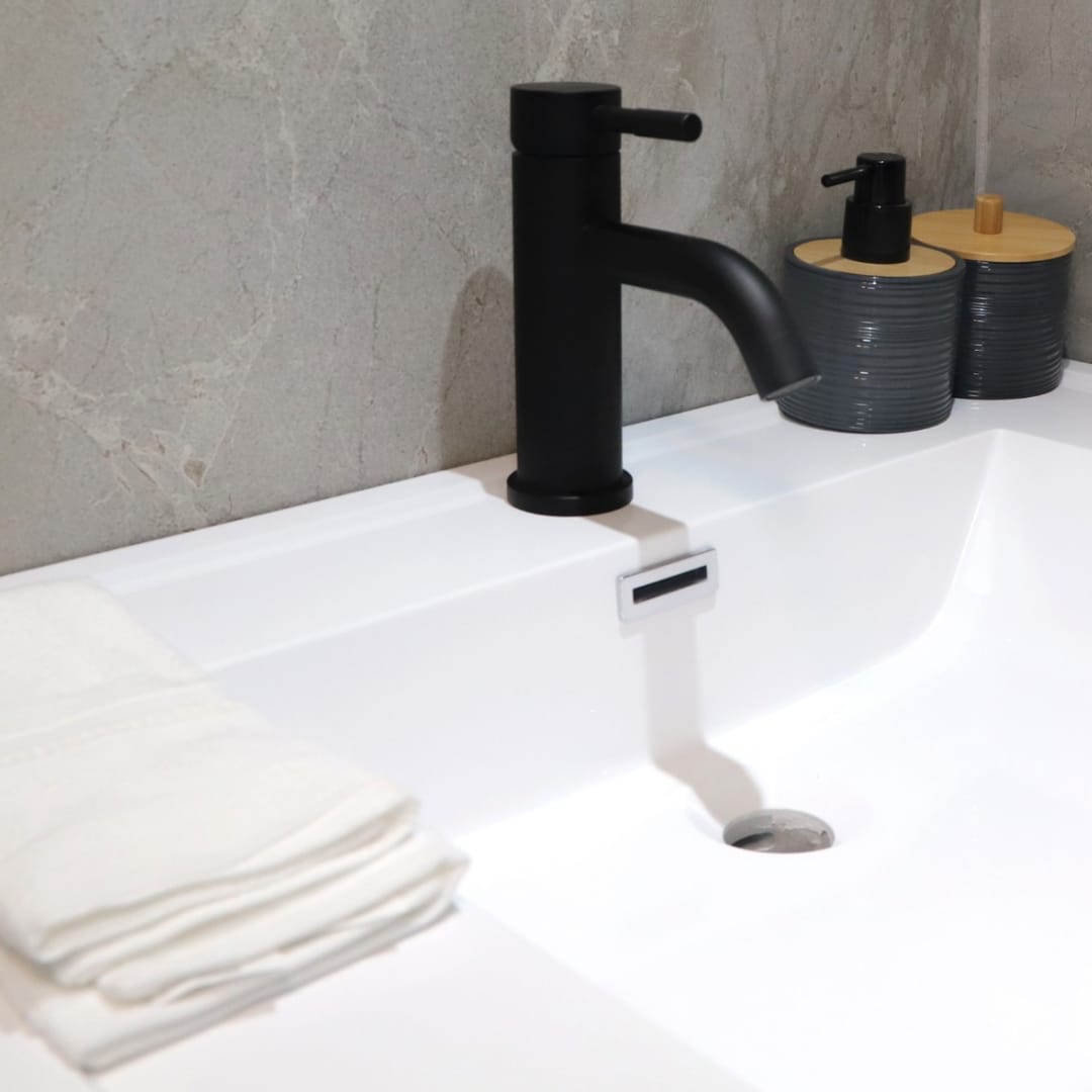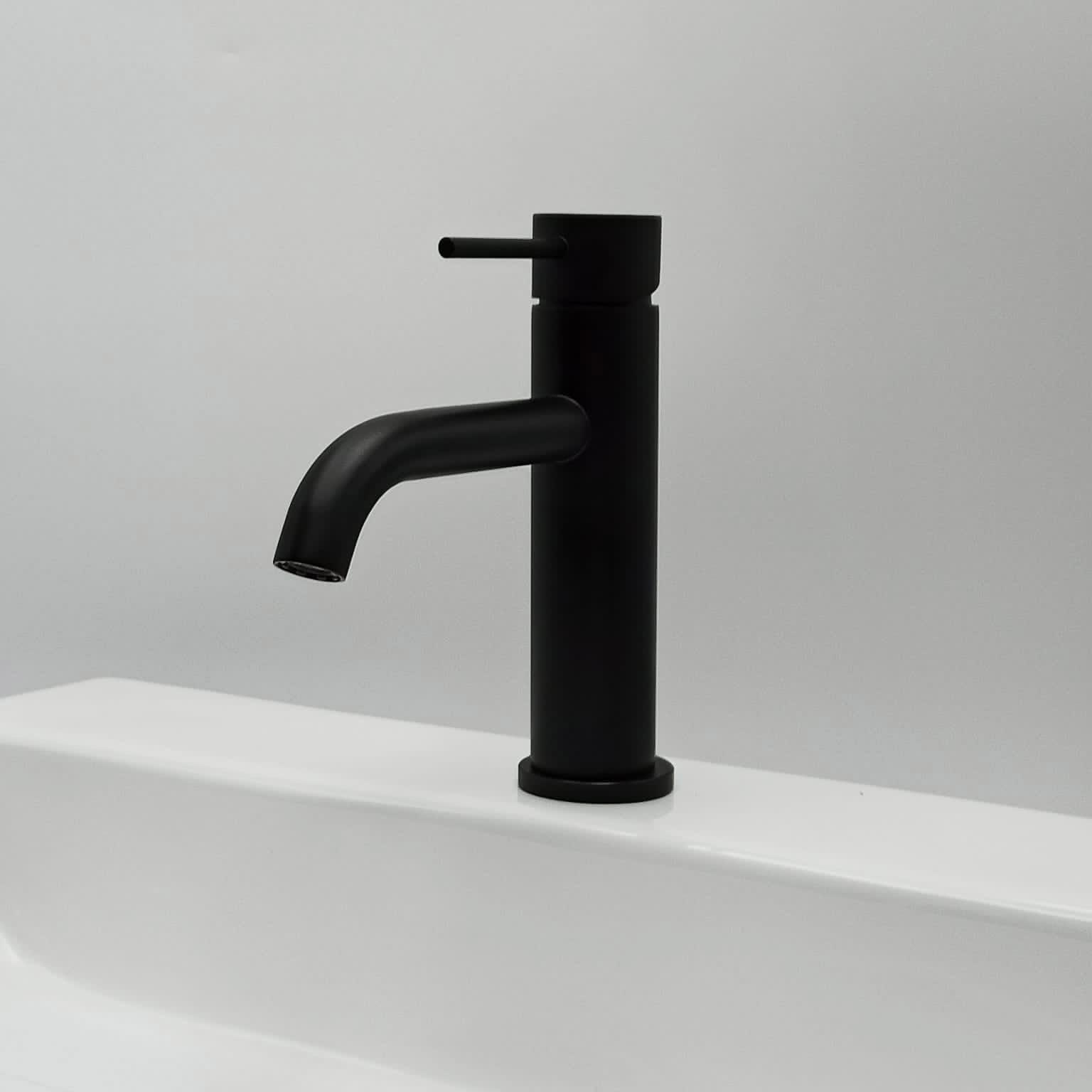Mezcladora de lavamanos baja Inox Black, material acero inox, terminación negro mate. Marca Zhen, industria china clase A.