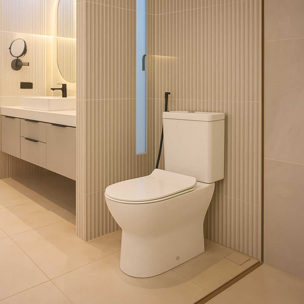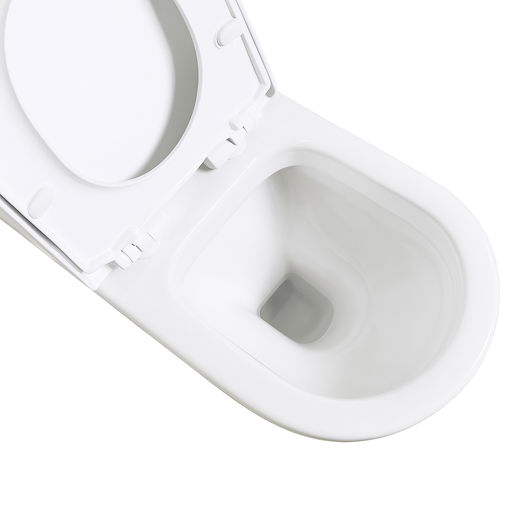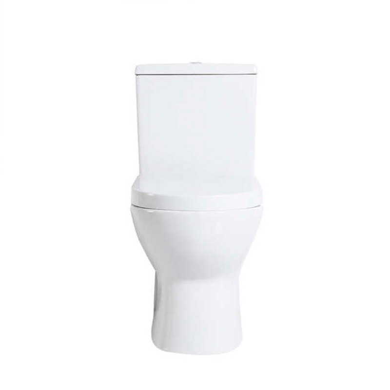 Inodoro de 2 piezas con doble descarga 3 y 6 litros, sistema de descarga Rimless, lavado 360º, trampa esmaltada, y distancia al piso 30 cm. Material loza vitrificada, terminacion blanco brillo. Marca Verona, diseño italiano.