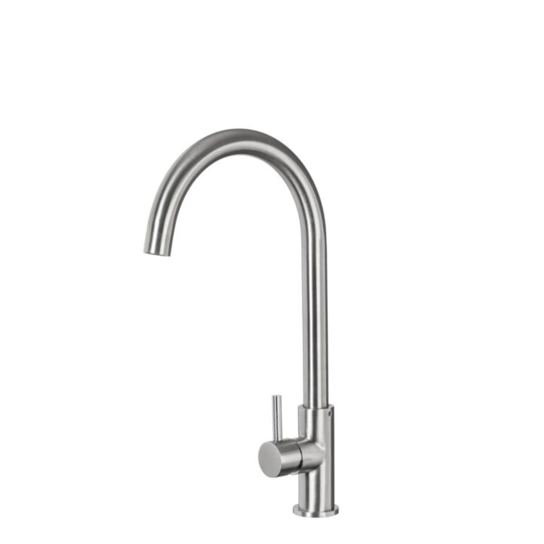 Mezcladora de lavamanos alto pico movil en material acero inoxidable. Funciona tambien para cocina. Marca Zhen, industria china clase A.