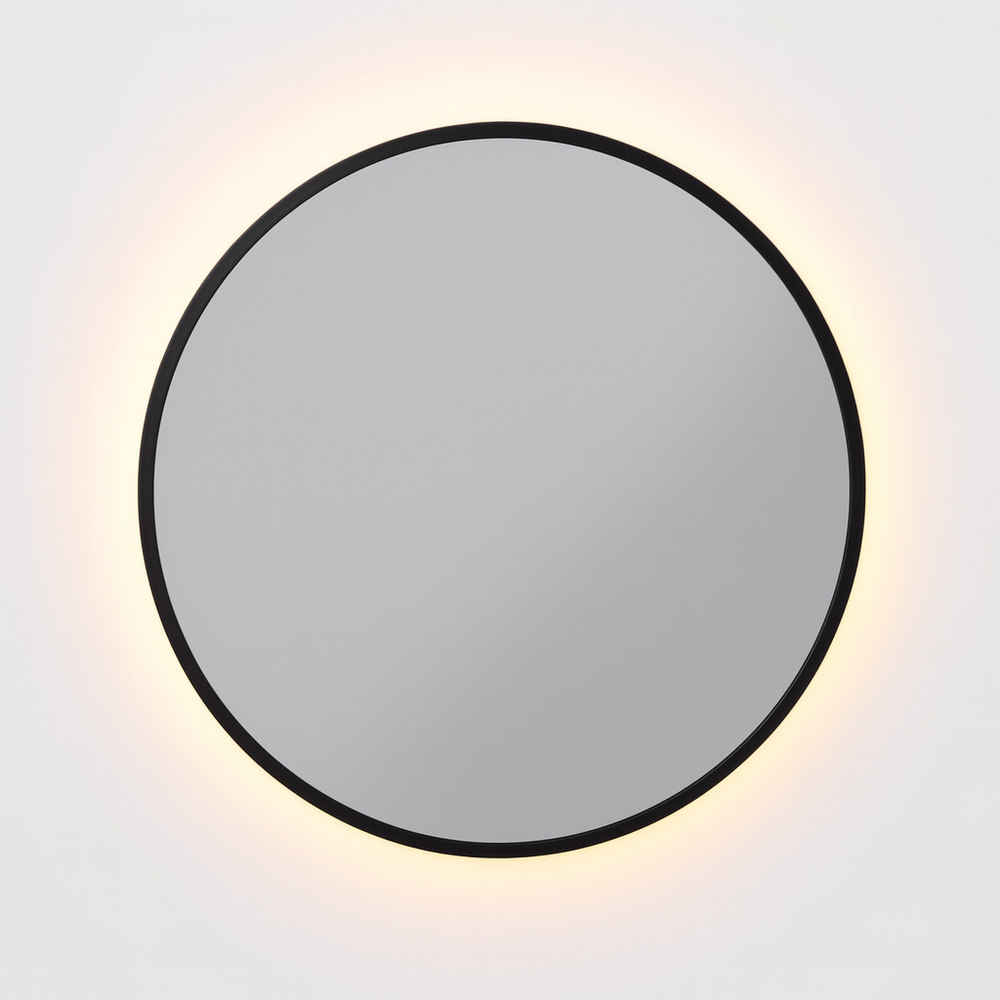 Espejo redondo con marco metálico terminación negro mate de 60 cm con luz led cálida incorporada . Marca Zhen, industria china, clase A.