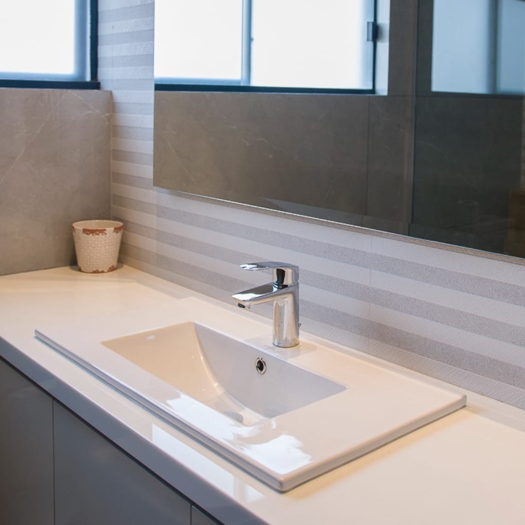Vanity top de loza vitrificada color blanco, medidas 81,5 x 47 cm, se puede utilizar como mesón y bacha incorporada, o como bacha de semi embutir. Marca Verona, diseño italiano.