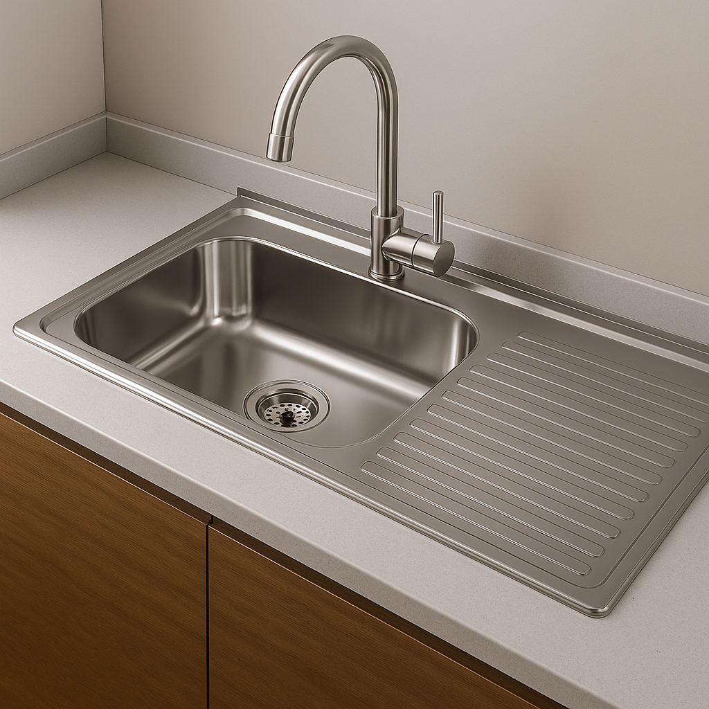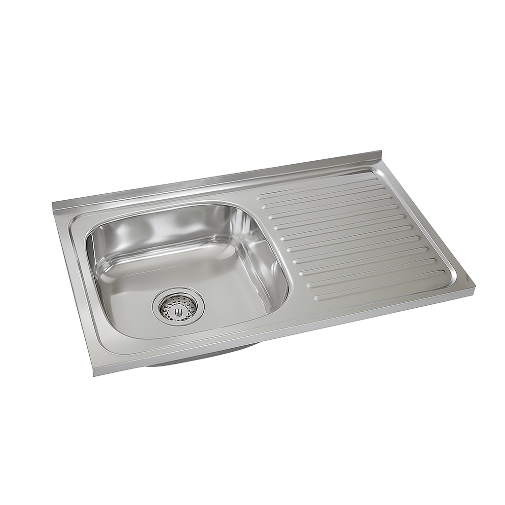 Bacha de una fosa con escurridero, material acero inoxidable, terminación cromado, medidas 80 * 50cm, incluye sifón y sopapa. Marca Zhen, industria China de clase A.