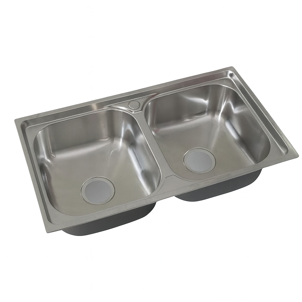 BACHA DE COCINA DE ACERO INOX DOBLE FOSA DE 78 * 43 *16.5CMS SIN ESCURRIDERO
