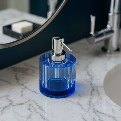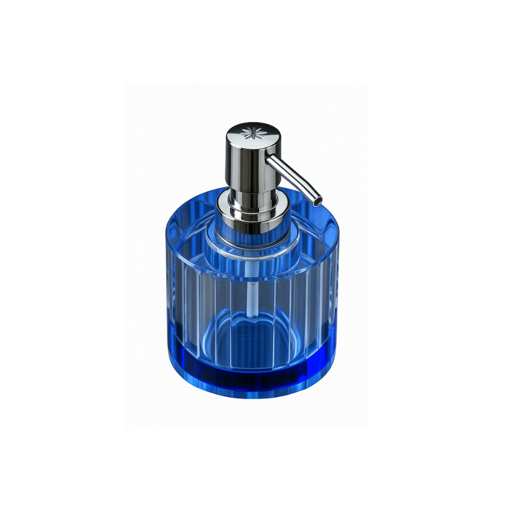 Dispensador de mesón de lujo en cristal recargable, terminación azul. Marca Zhen, industria china claseA.