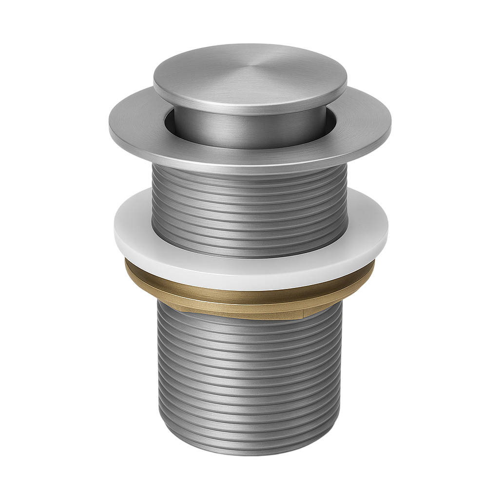 Sopapa click clack sin rebalse en acero inoxidable, acabado inox mate. Marca Zhen, industria China, clase A.
