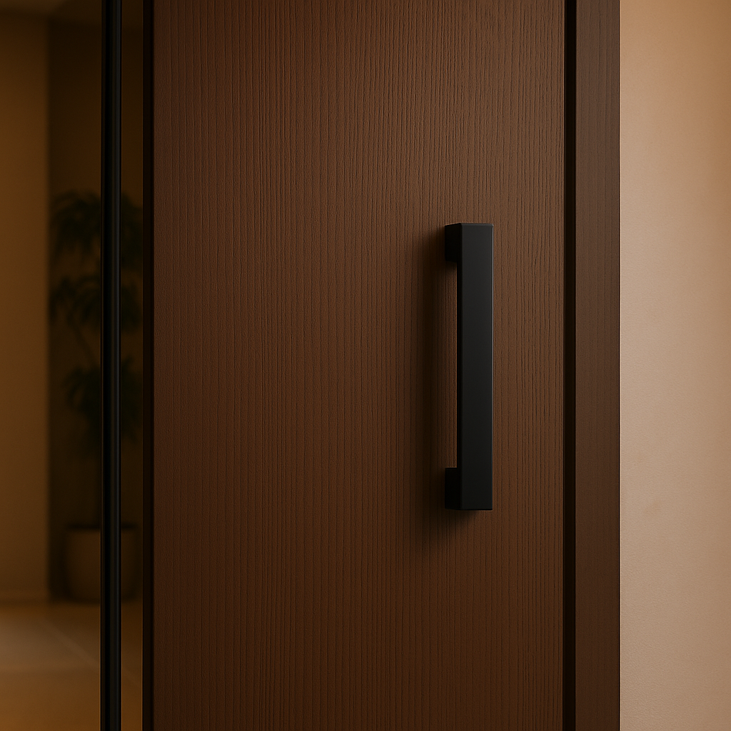 Manijon rectangular en acero inoxidable de 30 cm, acabado negro mate. Marca Helios, industria americana.