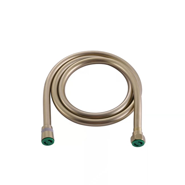 Chicotillo flexible para ducha telefono engomado, en acabado oro cepillado. Marca Zhen, industria China clase A.